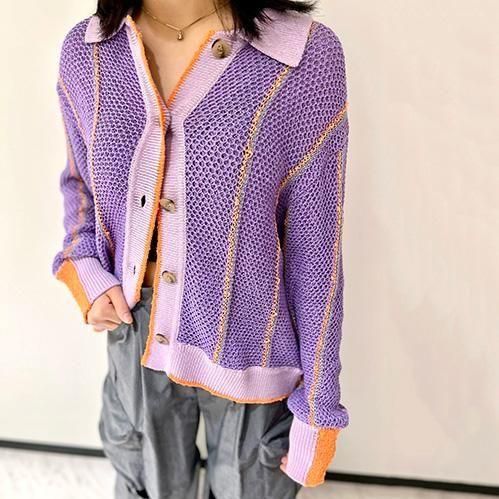 ☆HCAE エイチシーエーイー CONTRAST STITCH KNIT CARDIGAN