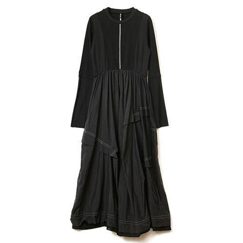 身頃部分はカットソー、スカート部分は軽やかな布帛の素材を切り替えたワンピース。