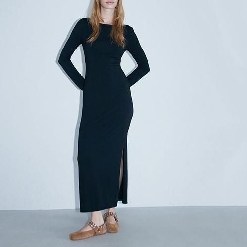 コラーゲンを含んだ生地でデザインしたラウンジドレス。人気のツイストバックディテールを新たにドレスに落とし込み、スカートはサイドにスリット入り。高めのウエスト切り替えも特徴的な程よいフィット感の一枚。バスト部分にカップ付き。