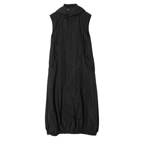 アーチ切り替えのポケットデザインがポイントになったノースリーブ型フーディーワンピース。