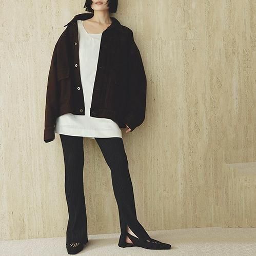 オーバーサイズながらも肩になじむシルエットでこなれ感をプラスしています。
