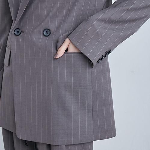 ◆素材:【BLK】ポリエステル68%、羊毛32%/【STRIPE】ポリエステル54%、羊毛44%、ポリウレタン2%/別布:【袖裏】ポリエステル100%/裏地:ポリエステル100%