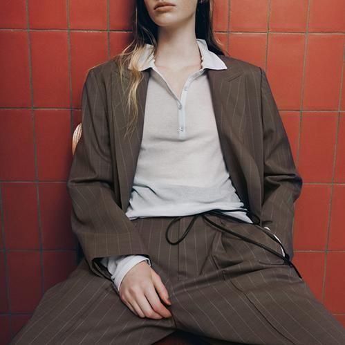 ボックスシルエットのマニッシュ感があるパターンで、羽織るだけでさまになるデザインに拘っています。