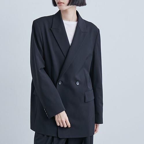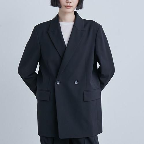 MIESROHE定番のリラクシーシリーズのダブルJKは、国内で丁寧に織り上げられた梳毛ウール素材を使用した洗練された一着。