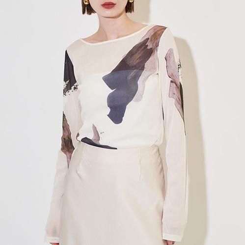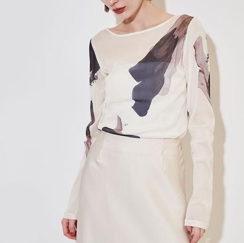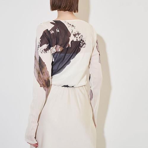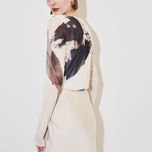 オリジナルプリントを使用したチュールカットソー。