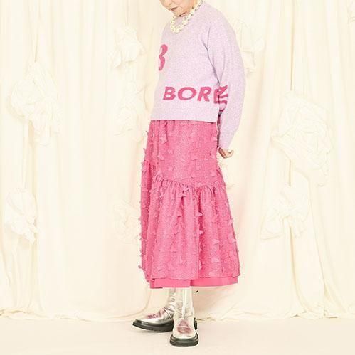 NOT BORE (つまんなくないよ)という意味の言葉を入れました。今回のコレクションのテーマはNOT BORE(つまらなくしない、楽しもう、楽しませよう)です。