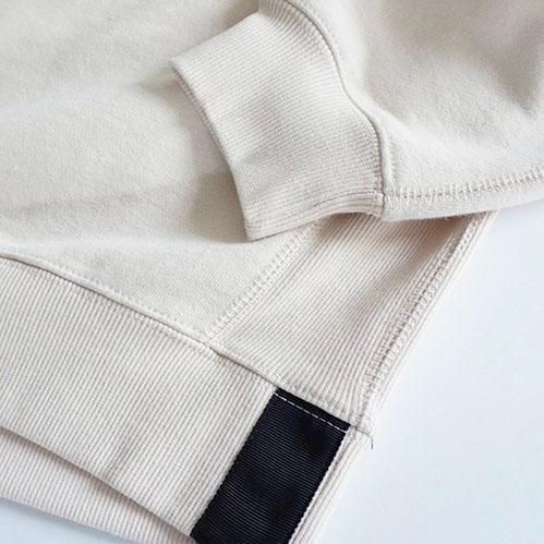 新しい形です。着丈は大きめの身頃のサイズに対しやや短め。オリジナルボディでヒップにかかる程度の着丈にしました。裏はパイル地で夏以外は着ることが出来ます。薄すぎず厚すぎずほどよい肉感です。スカートがお好きな方にバランスの良い着丈です。また小柄さんにもとても向いています。以前はミニスウェットはサイズ自体が小さめでしたが、今回は少し着丈が短い程度にとどめています。ですので、腰回りが気になる方にも、ピタピタせず、身頃はゆったりとしているので、着やすいと思います。