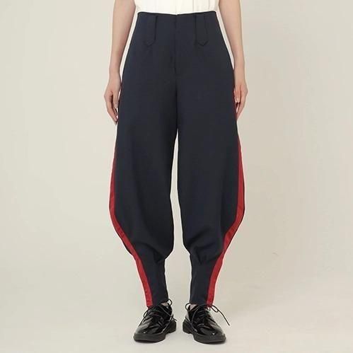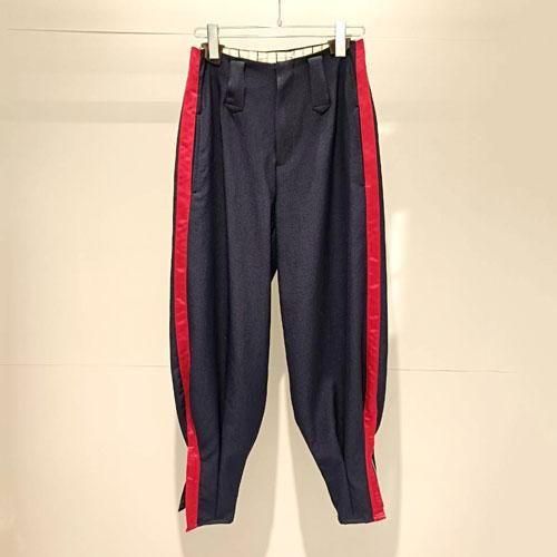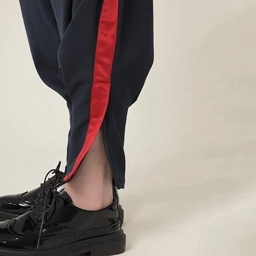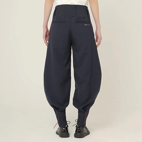 ユニフォームのアイコンであるボンタンパンツを、ドレスパンツからインスパイアされたカッティングでアップデートしました。裾はファスナーで開閉可能で、ファスナーを開けた履き方もおすすめです。スニーカーだけでなく、革ブーツとも相性抜群です。