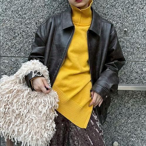 合皮素材を採用したシンプルなレザージャケットが登場。