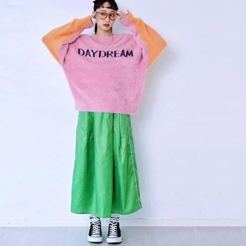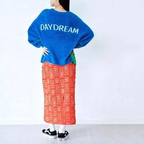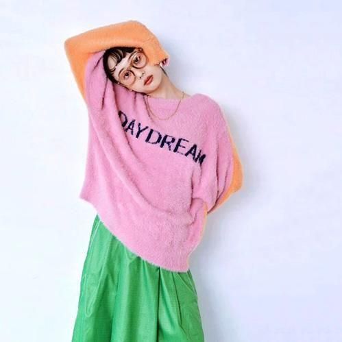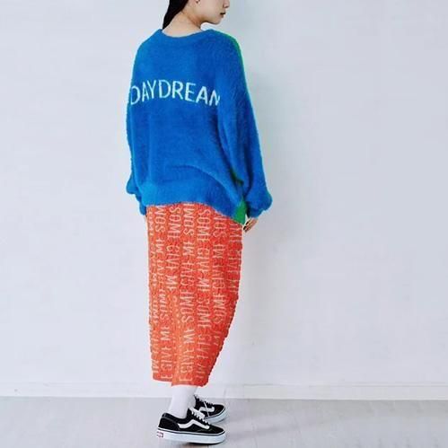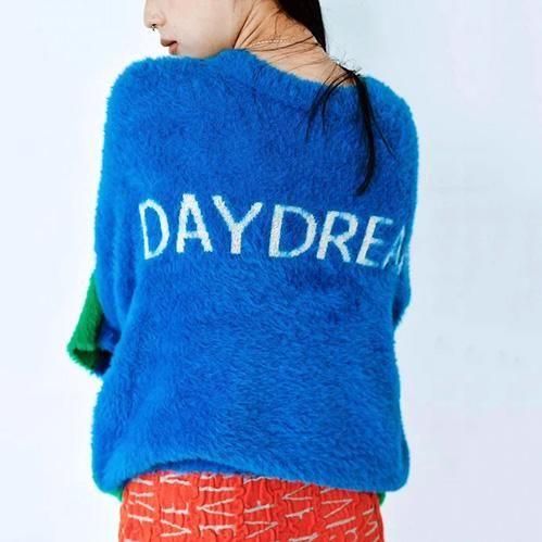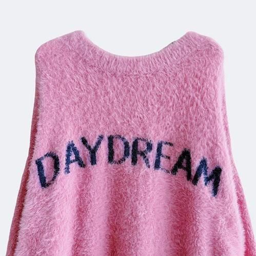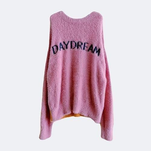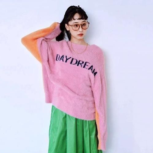 ふわふわのフェザーヤーンで仕立てたDAYDREAMロゴ入りニット。