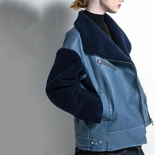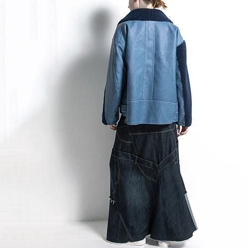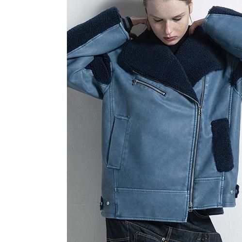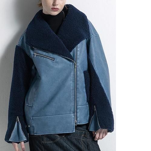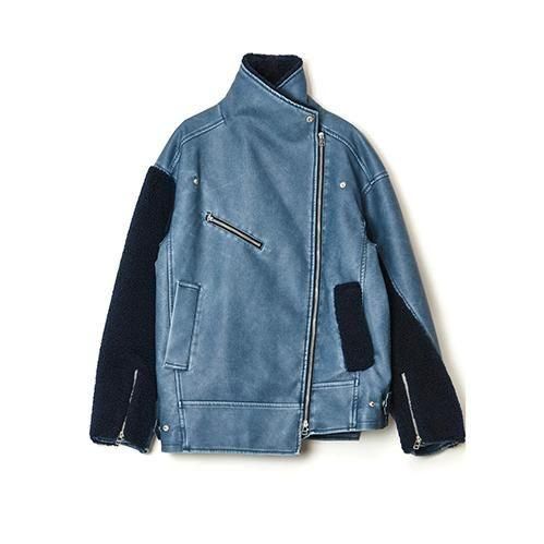 洗い加工でヴィンテージライクな風合いのエコレザーを組み合わせたライダースジャケット。