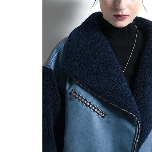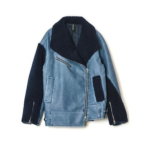 ショールカラーのボアが、エッジィになり過ぎず大人でも着やすい抜け感のある