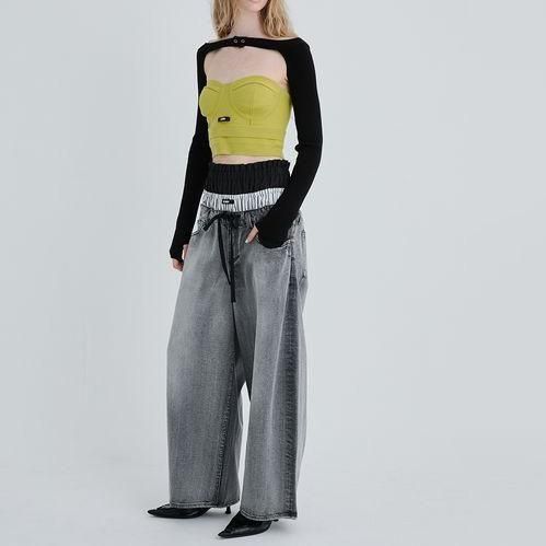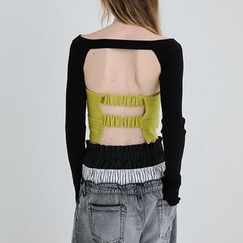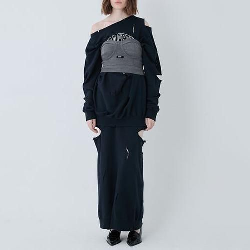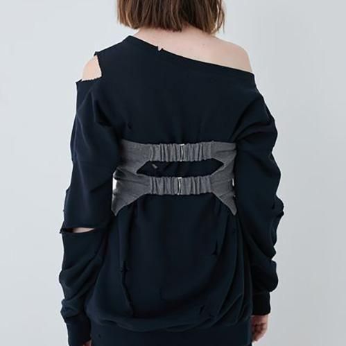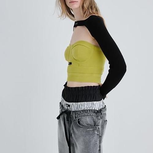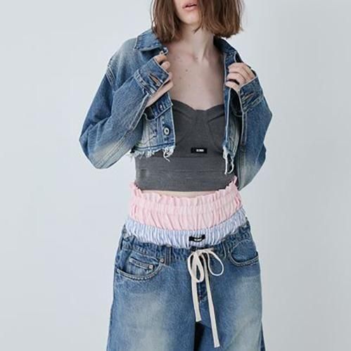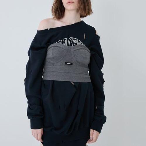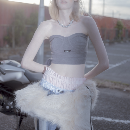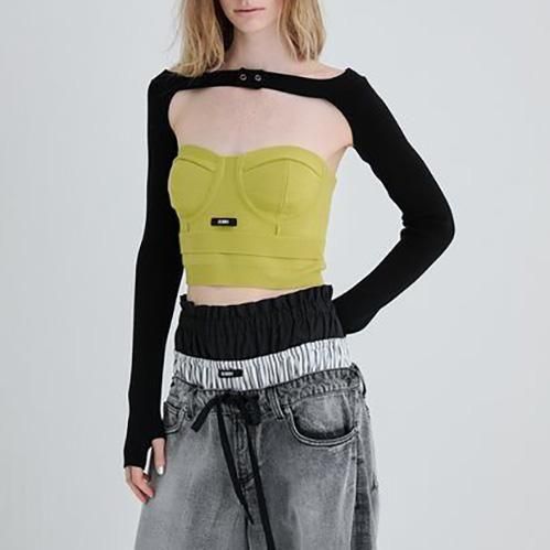 Tシャツやスウェットの上に重ねて、ビスチェとして着こなしたり、ベアトップのように一枚で着て上からジャケットを羽織ったり。さまざまなレイヤードスタイルに対応してくれるアイテムです。