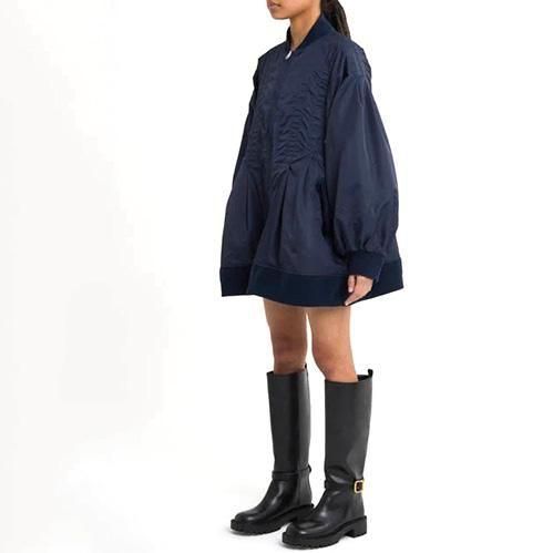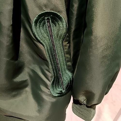 今シーズンは、ミリタリーからのインスピレーションを受け、表にナイロンサテン素材、裏側にオリジナルのLeaf柄ステッチがほどこし、中綿は薄手機能綿である、サーモライトを使用。