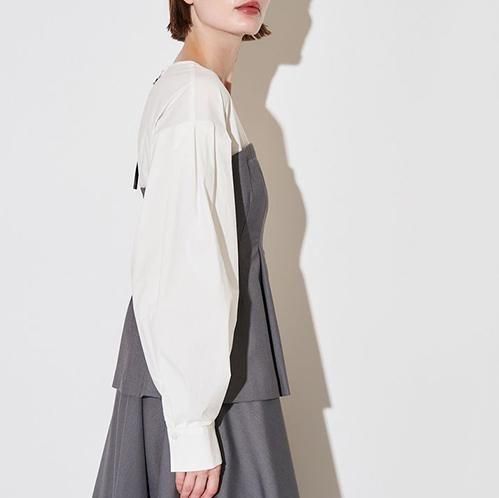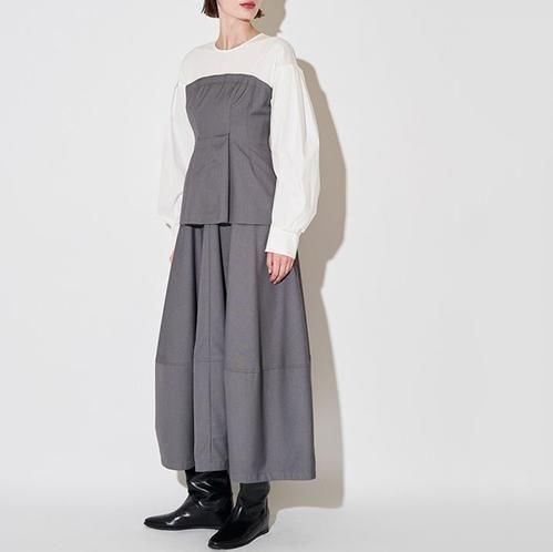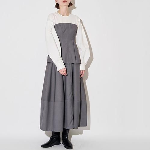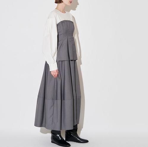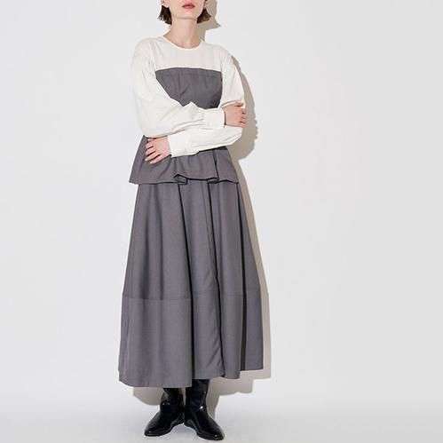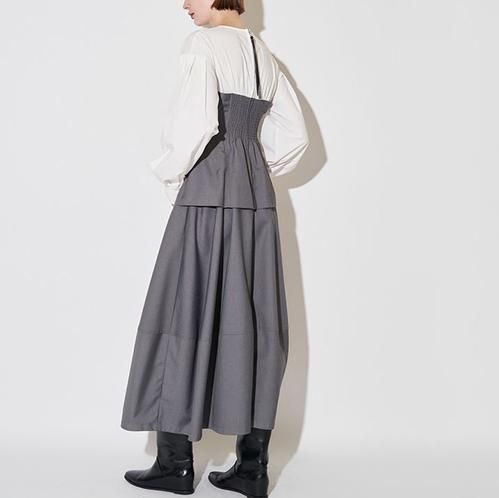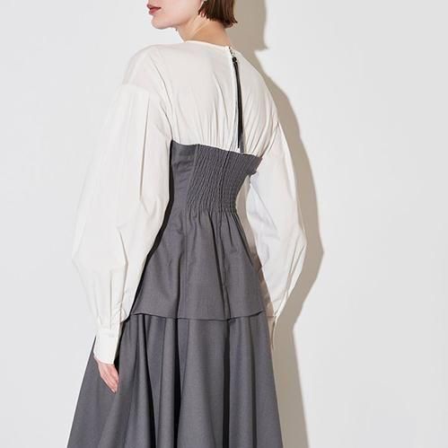 ベア切り替えがレディシックなワンピースはペプラムベアをレイヤーしている様なデザインで1枚で様になるワンピース。