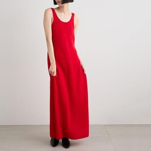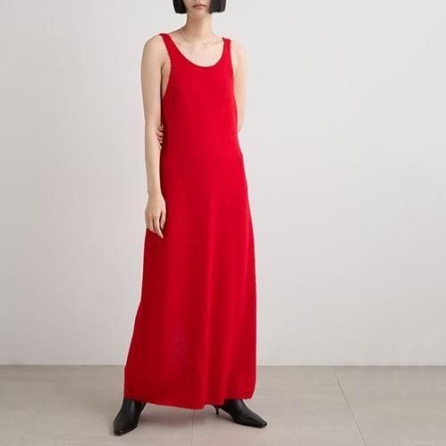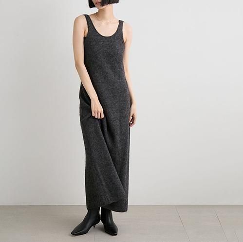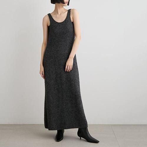 アルパカ混の柔らかい糸を使用したニットキャミドレス。